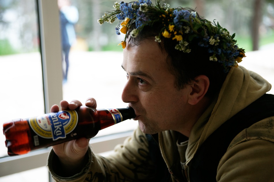 Младежите позират с венци, все пак е един ден след Еньов ден.