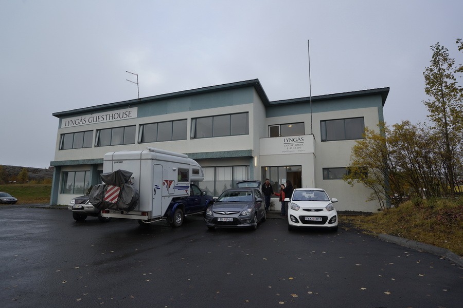 Пристигаме в хотела (все още е 17 часа, веднъж да сме навреме), настаняваме се и отиваме да обядваме. Хотела всъщност е кравеферма в полето, на брега на езерото Myvatn.