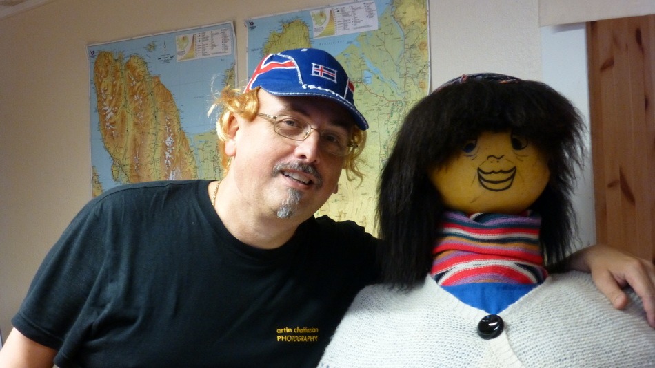 В магазина за сувенири Артин си намери пищна исландка и не пропуснах да го снимам.